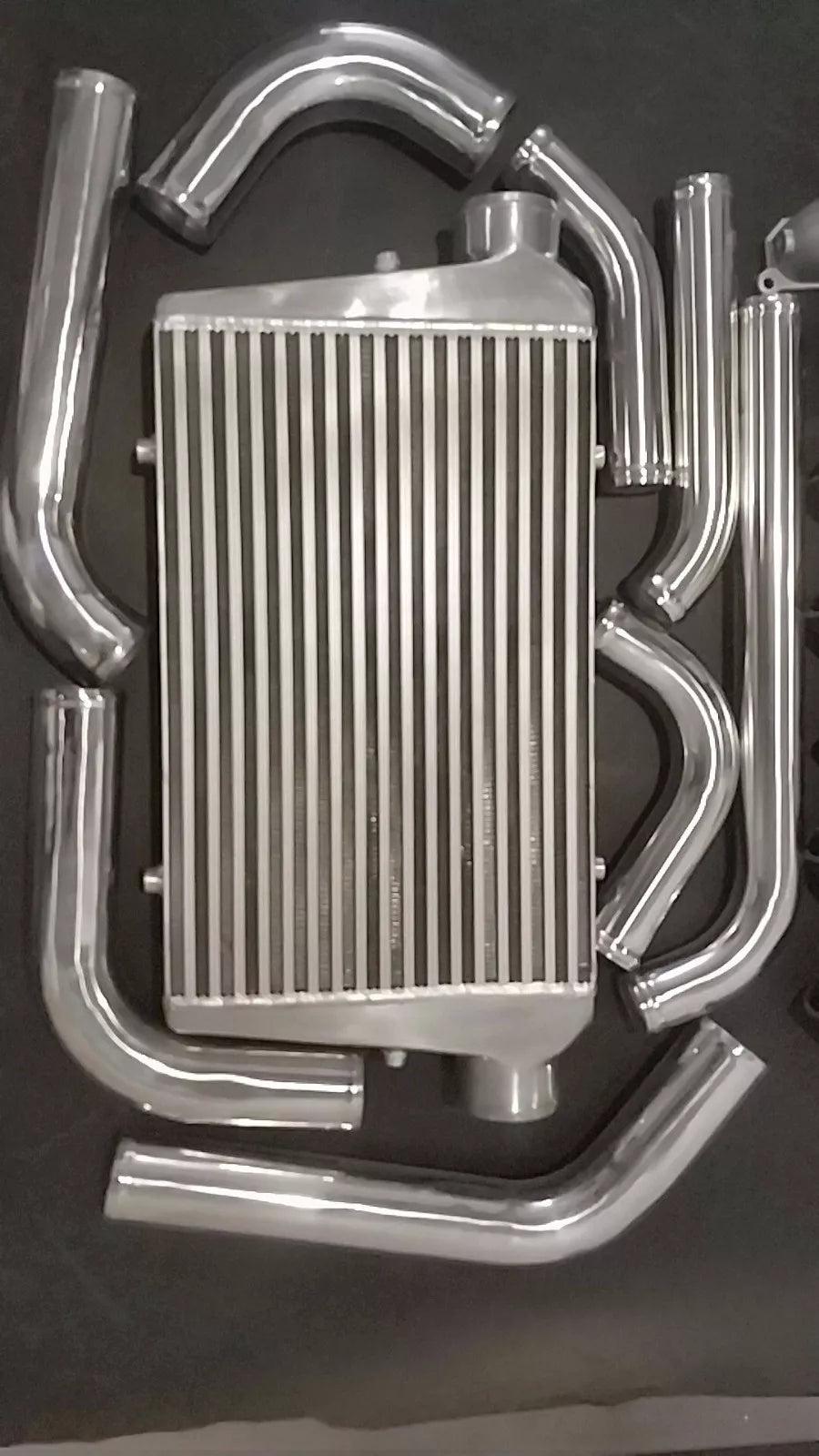 For LHD vehicles, minor modification to the original piping may be required due to steering and layout differences. - Complete kit: includes all brackets, silicone hoses, aluminum piping, and stainless steel clamps