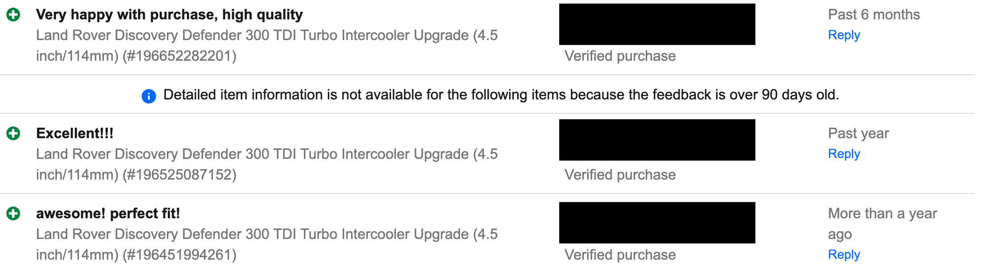 “My recently restored Land Rover Defender (300 TDI) was upgraded from the stock intercooler and turbo to Unicorn’s intercooler and Falcon’s turbo. East Botha of Lekker Defenders installed them and noted that Unicorn’s was notably larger than the OEM. The truck has not been been on a dyno, but has more power and I get maybe 2-3 more MPG. Unicorn’s customer service is responsive. I have not noted any decrease in reliability. Unicorn’s was in stock while a more known UK brand was out of stock when I bought. "